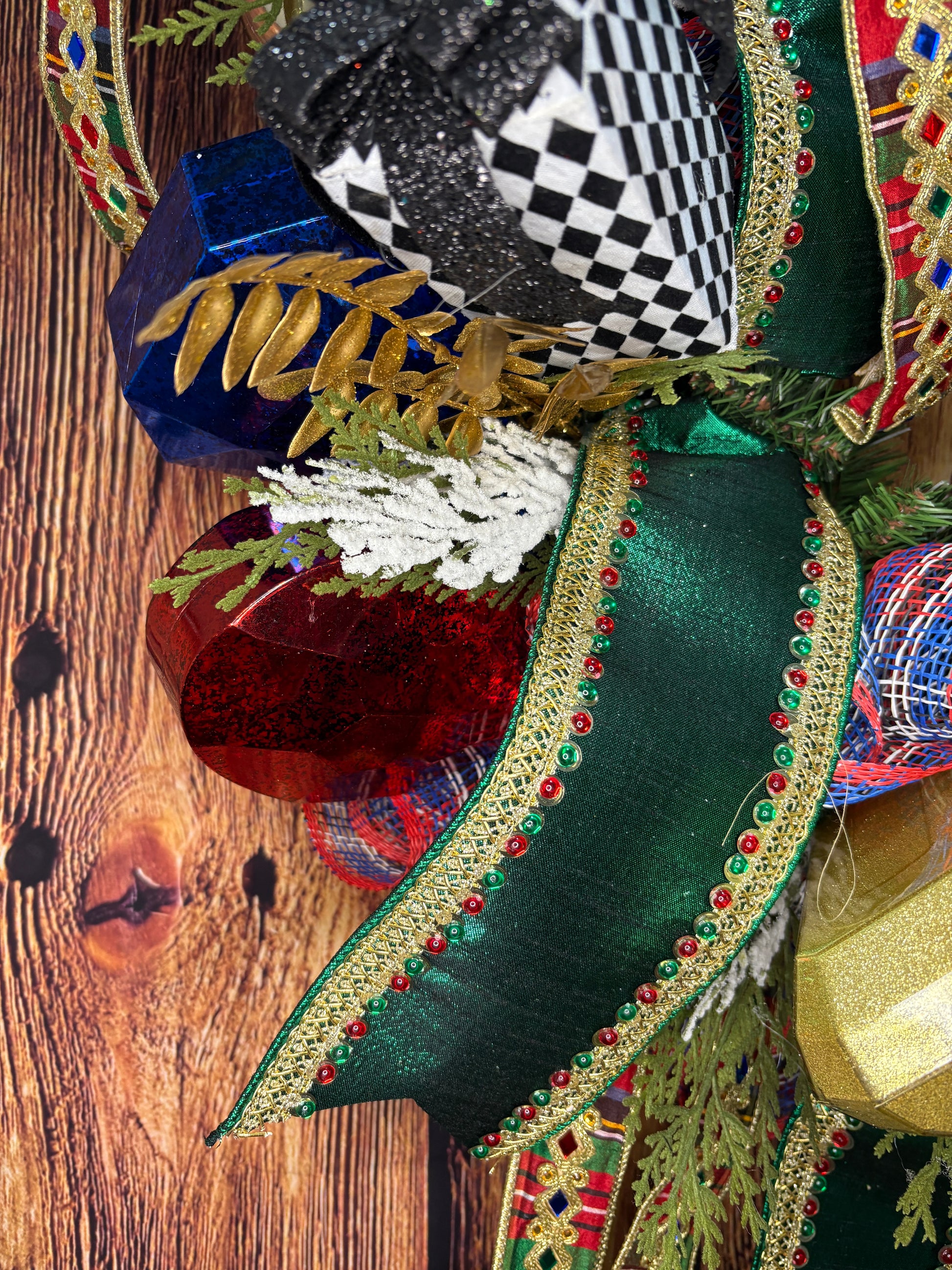 Bring the magic of the holidays into your home with this beautiful, handmade Nutcracker-themed wreath. Perfect for Christmas, this wreath combines traditional festive elements with a playful touch.